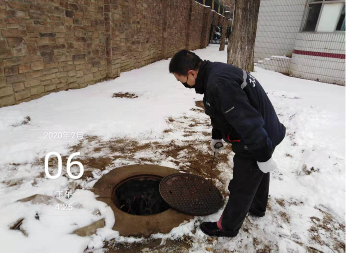 物业人冒雪严守小区,做好出入人员登记、体温测量