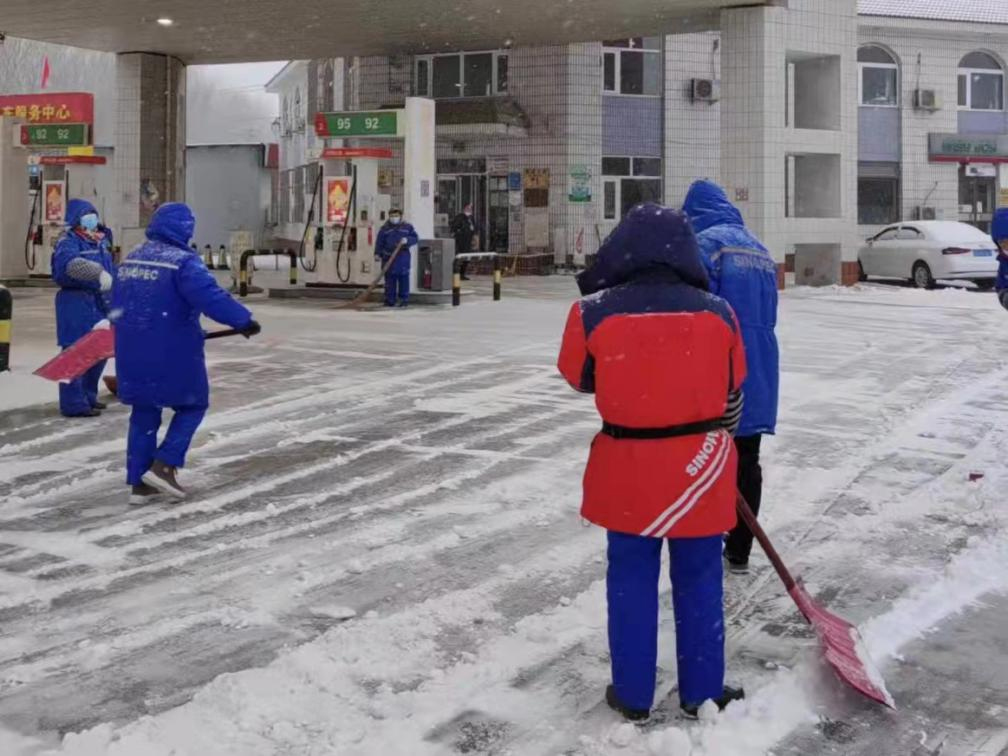 资产公司党员干部对九龙加油站、公司门前道路及院内积雪进行清扫