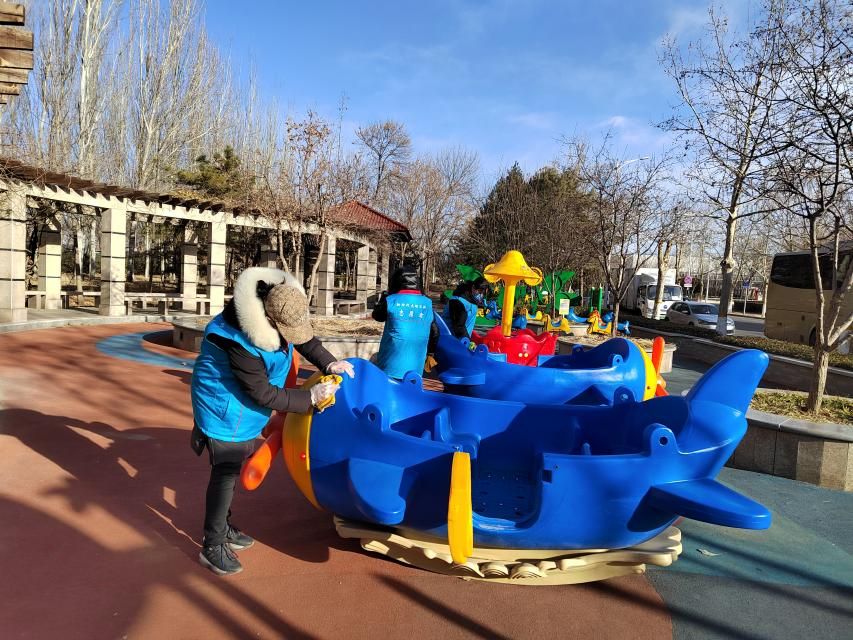 活动中,大家冒着寒风,手拿抹布、垃圾袋、夹子、指挥旗等工具,分工合作、井然有序,有的捡拾道路两侧垃圾、有的擦洗公共设施、有的码放共享单车、有的值守路口交通安全,纷纷创建文明城区助力添彩。