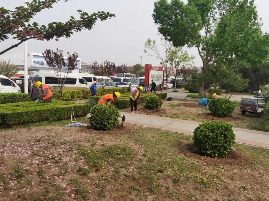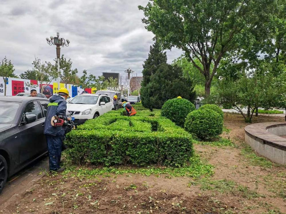 天房绿茵于2024年4月10起开展国际展览中心周边环境保障工作:国展地铁公园、裕东路、天北路中心色带、国展公园、安华街、裕丰路、P6停车场苗木补植、除草和修剪等。保障期间国展周边道路补植苗木共计20716株。修剪花灌木278株、绿篱11800平方米、灌木300株;拔除野草1900平米。每天出动25人及巡查车辆,清捡周边道路绿地、P6停车场白色垃圾和裕丰路、国展公园三个临时公厕的保洁及其他应急事情的处理。