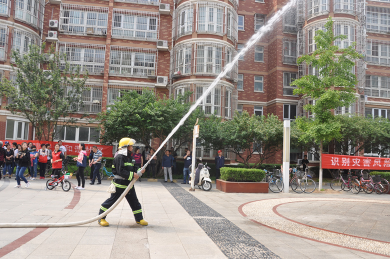 上午9时40分,小广场内点燃演练油锅,锅内燃起大火,并冒出滚滚浓烟,裕龙五区项目部经理张卫民现场拨打了消防站应急报警电话,随后微型消防站火警铃声响起,物业公司立即启动了火灾应急处置预案,6名义务消防员驾驶巡逻车迅速赶到现场,进行现场灭火,整个灭火过程做到了快速、安全、有序,消防演习取得圆满成功。随后物业公司维修人员还现场演示了防汛扛沙袋筑堤坝,连接发电机抽排小区积水等内容。活动后由街道及大龙物业公司领导向居民代表发放防灾减灾宣传册共计850份。